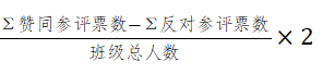 2分:以班级为单位,以学生互评为主等方式进行,应能充分反映研究生的日常德育表现和参加学院以及学校活动等表现情况,并确保学生互评工作的公平、公正、合理。学生互评计算公式如下:
