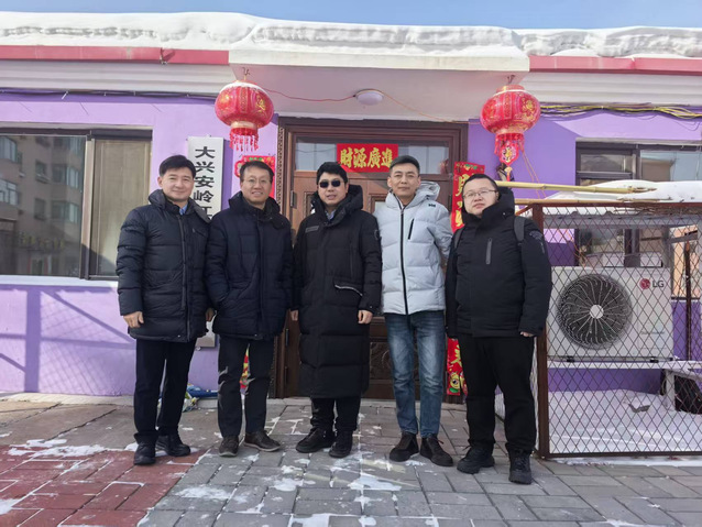 代表团实地考察了位于漠河市和哈尔滨市的寒地热泵实验室两个测试基地,深入了解相关机组在极寒气候条件下的运行表现与数据采集情况。在漠河市,漠河市政府对考察工作给予大力支持,副市长范鹏涛热情接待了代表团一行,并就极寒地区清洁能源技术应用与院地合作进行了交流。在哈尔滨期间,代表团参观了黑龙江省微纳流动与传热重点实验室、寒地建筑科学与工程中心,与吴健教授、郑智颖副研究员等科研团队围绕寒区热泵技术、AI+热泵等方向深入交流。